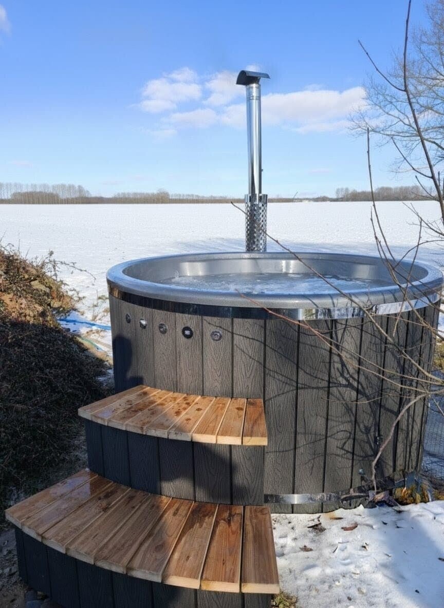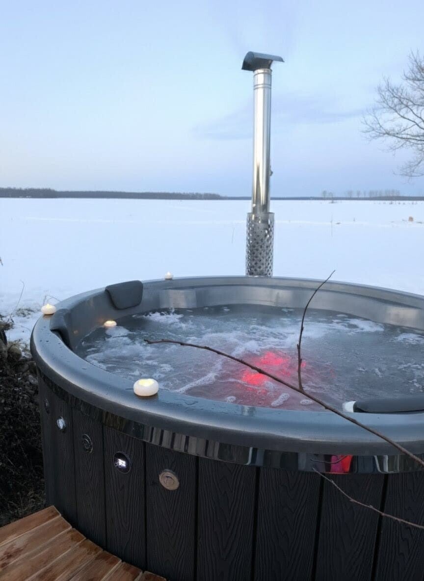 Stell dir vor: Die Luft ist kühl, der Sternenhimmel funkelt und du versinkst im 38 Grad warmen Wasser. Das Feuer im Holzofen knistert leise, der Dampf steigt auf – und du? Du bist einfach zu Hause. ✨